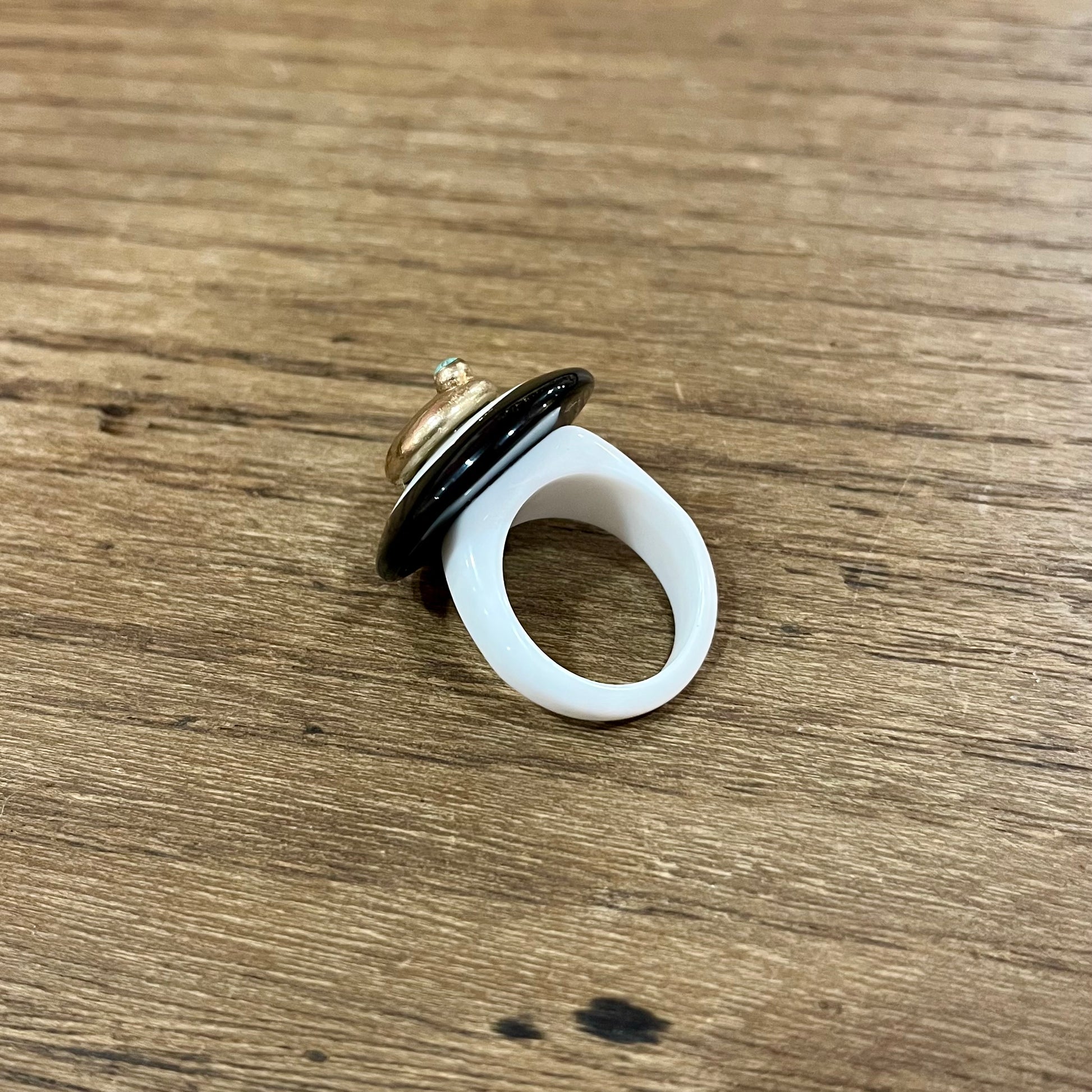 - Secondo strato: resina nera profonda, che crea un equilibrio grafico e deciso.