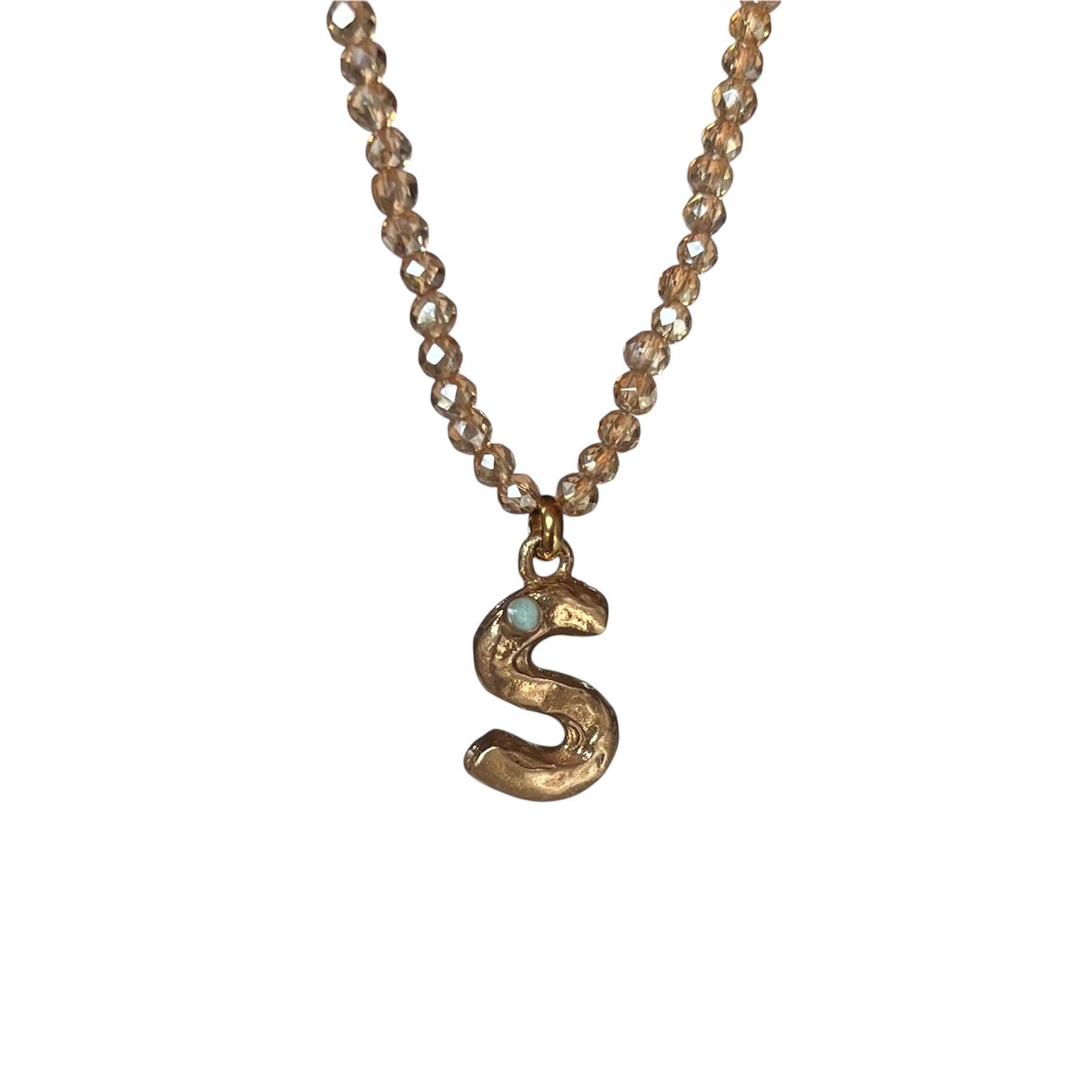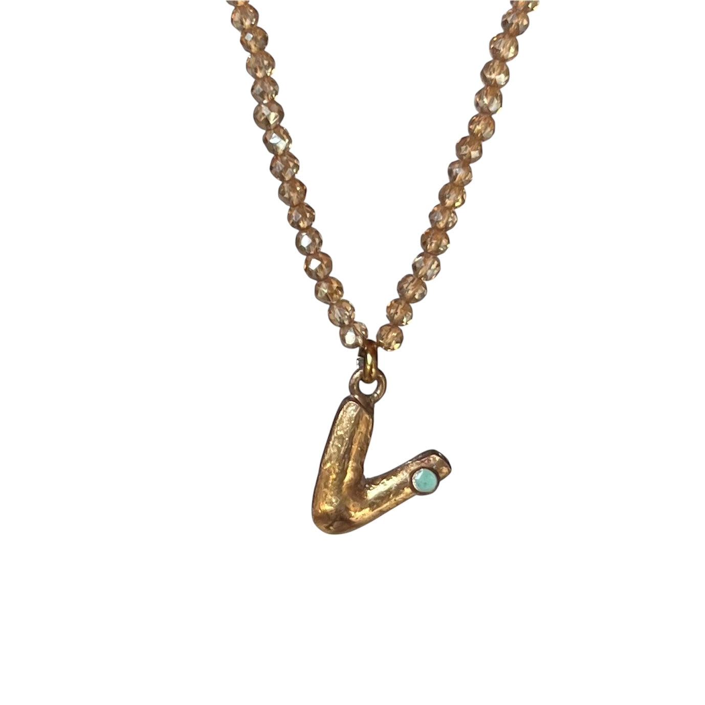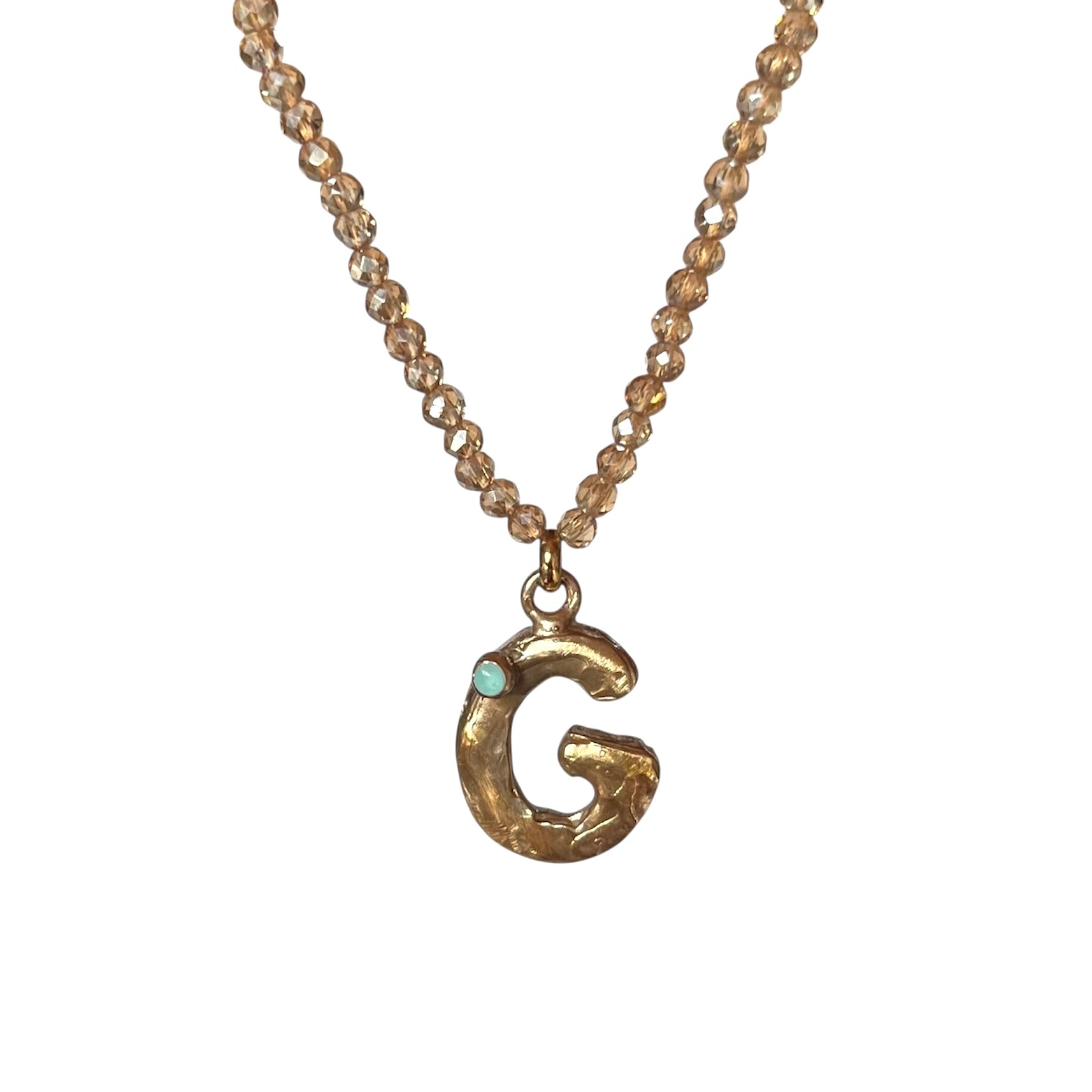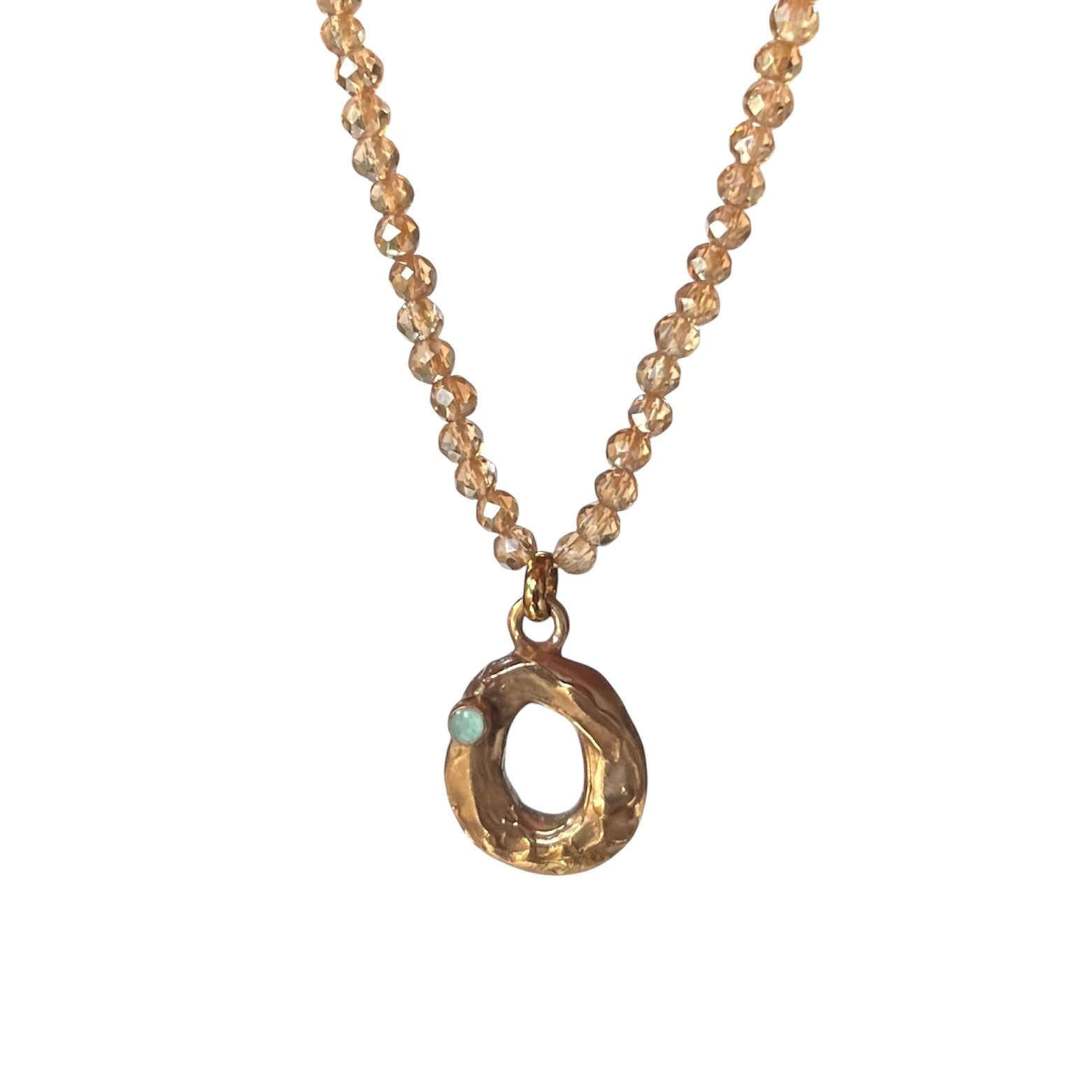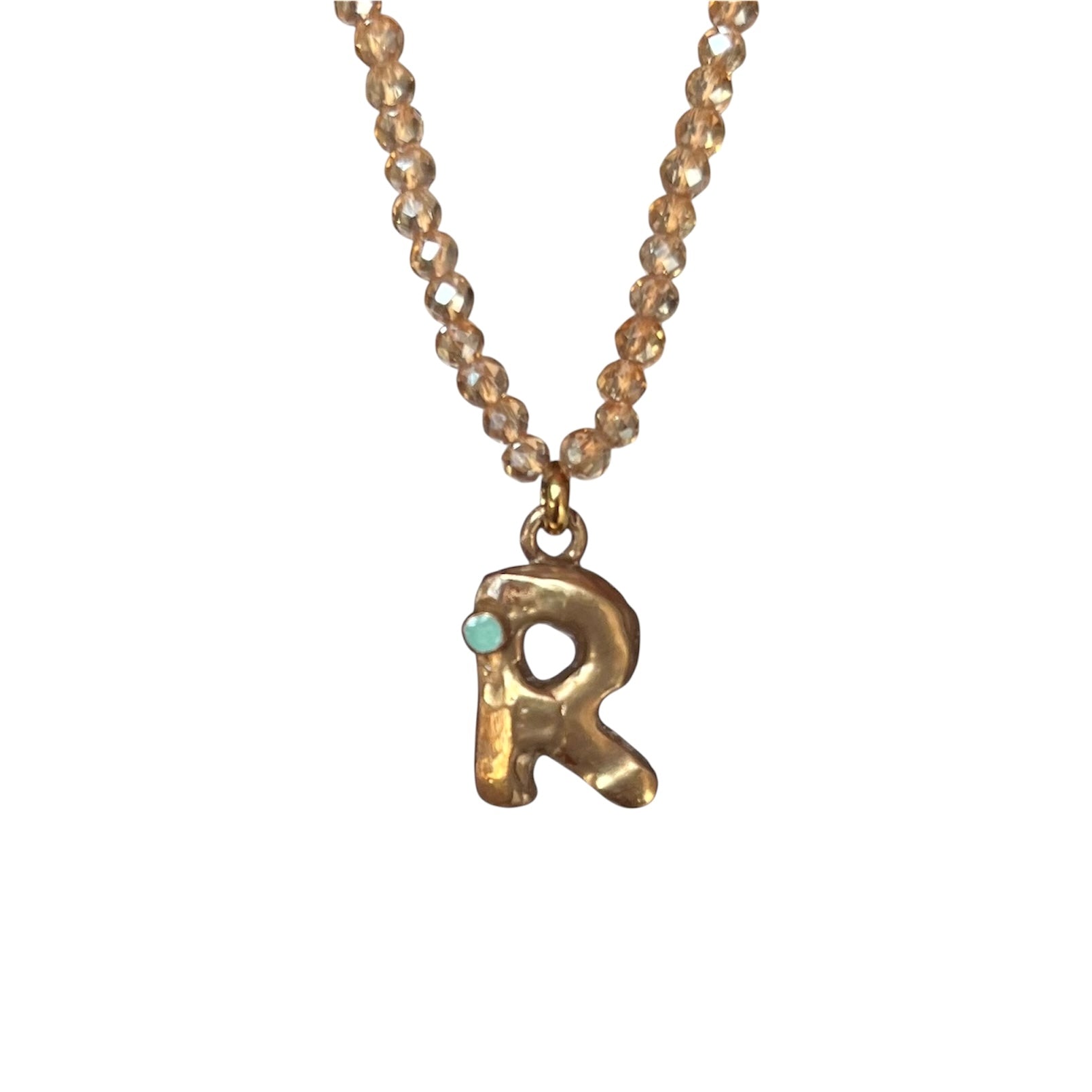 Girocollo regolabile (40/45 cm)con pietre sfaccettate delicate, luminose e la tua iniziale in bronzo giallo creata a mano : ogni lettera racchiude un significato speciale scelto da Vover.