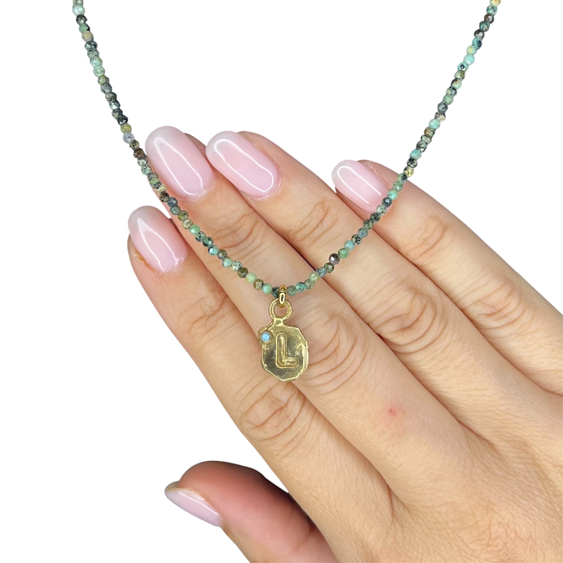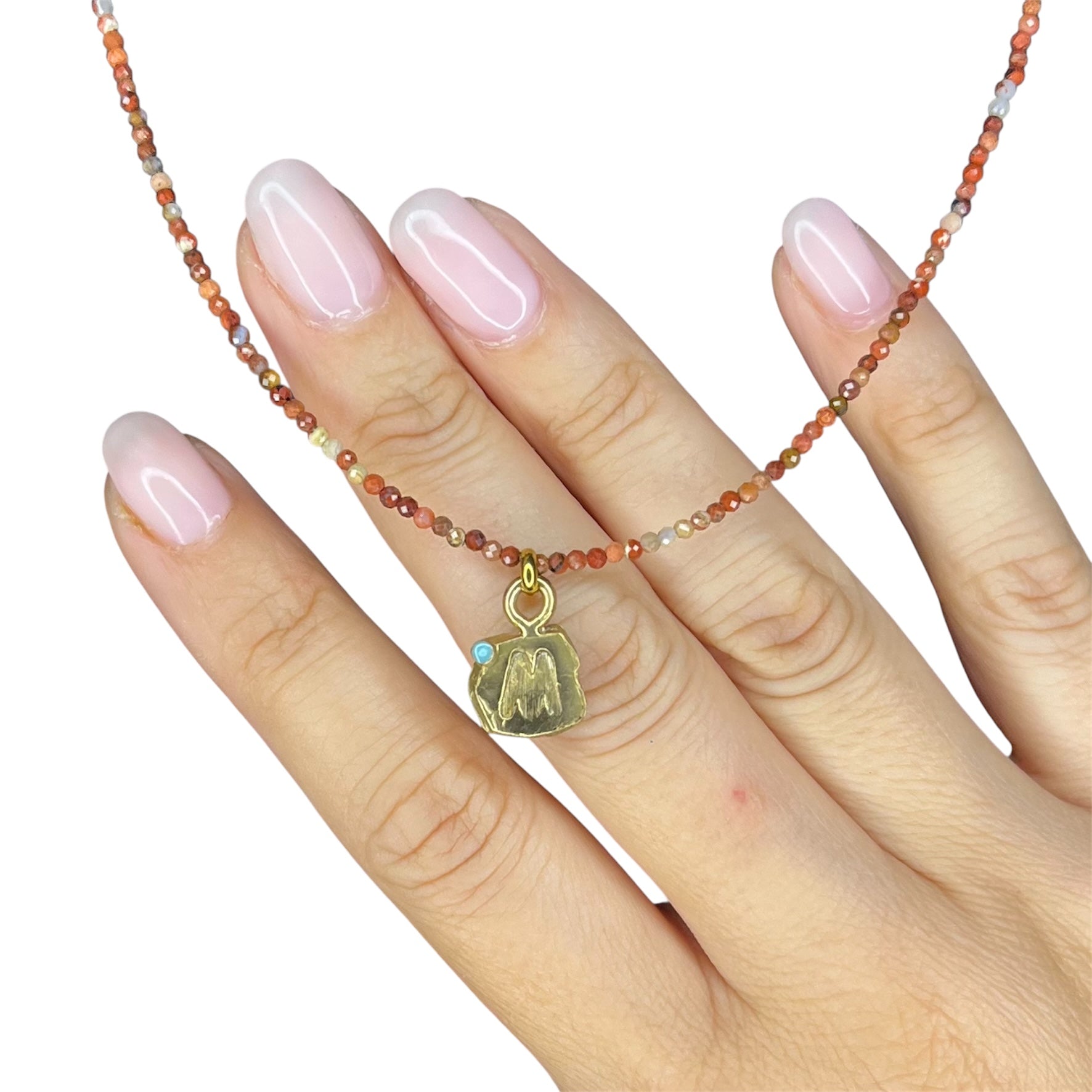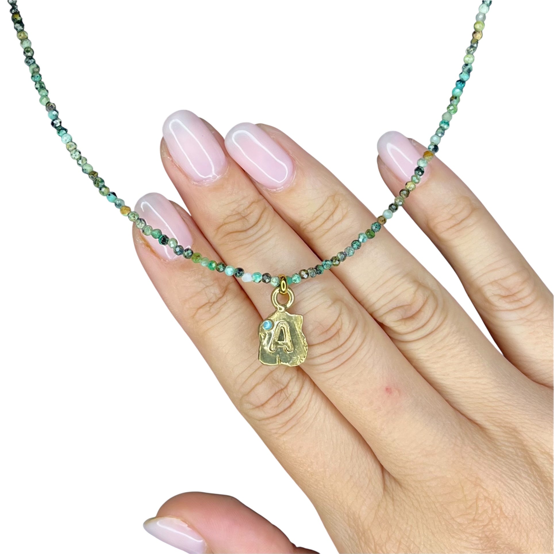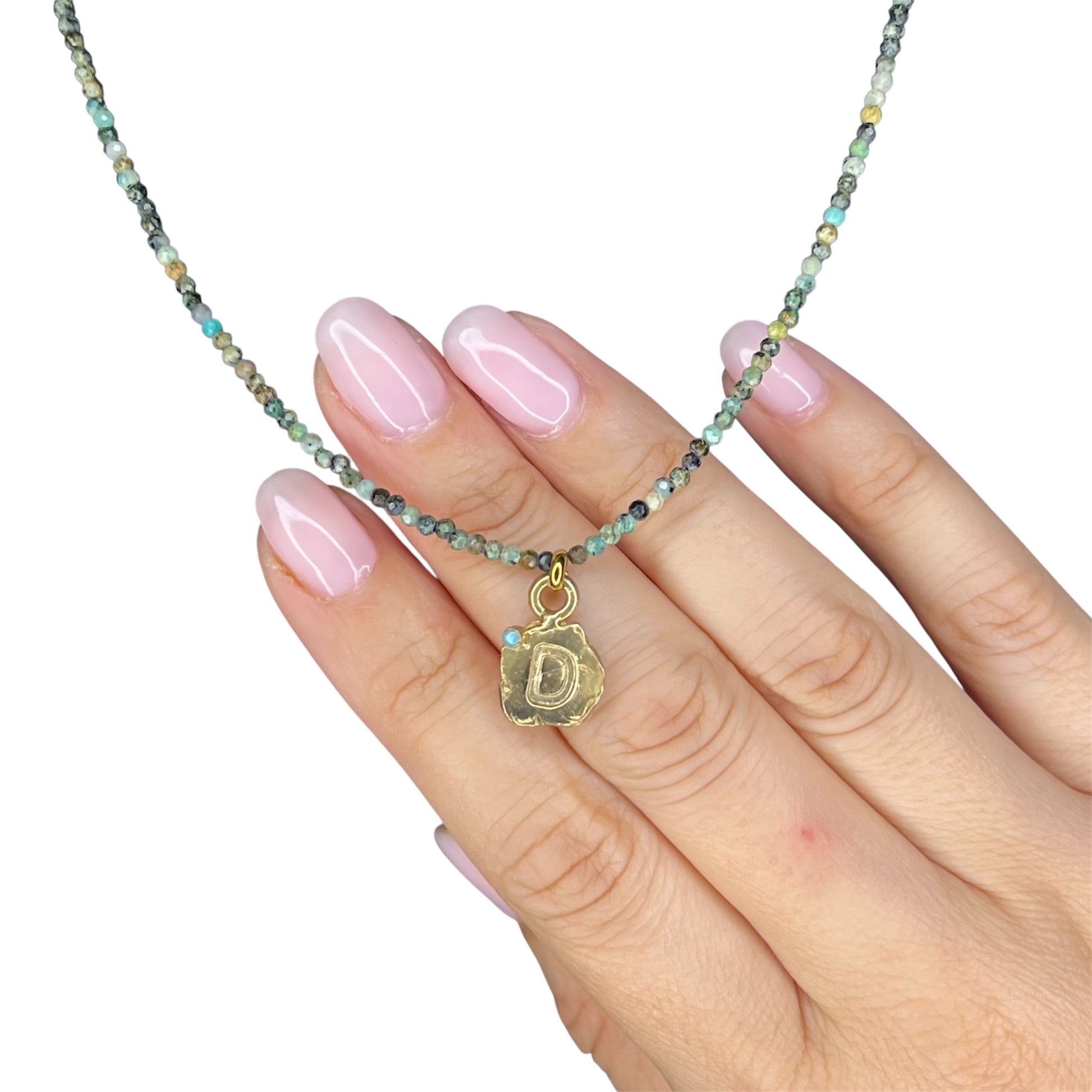collana girocollo con pietre naturali e ciondolo in bronzo giallo fatto a mano.