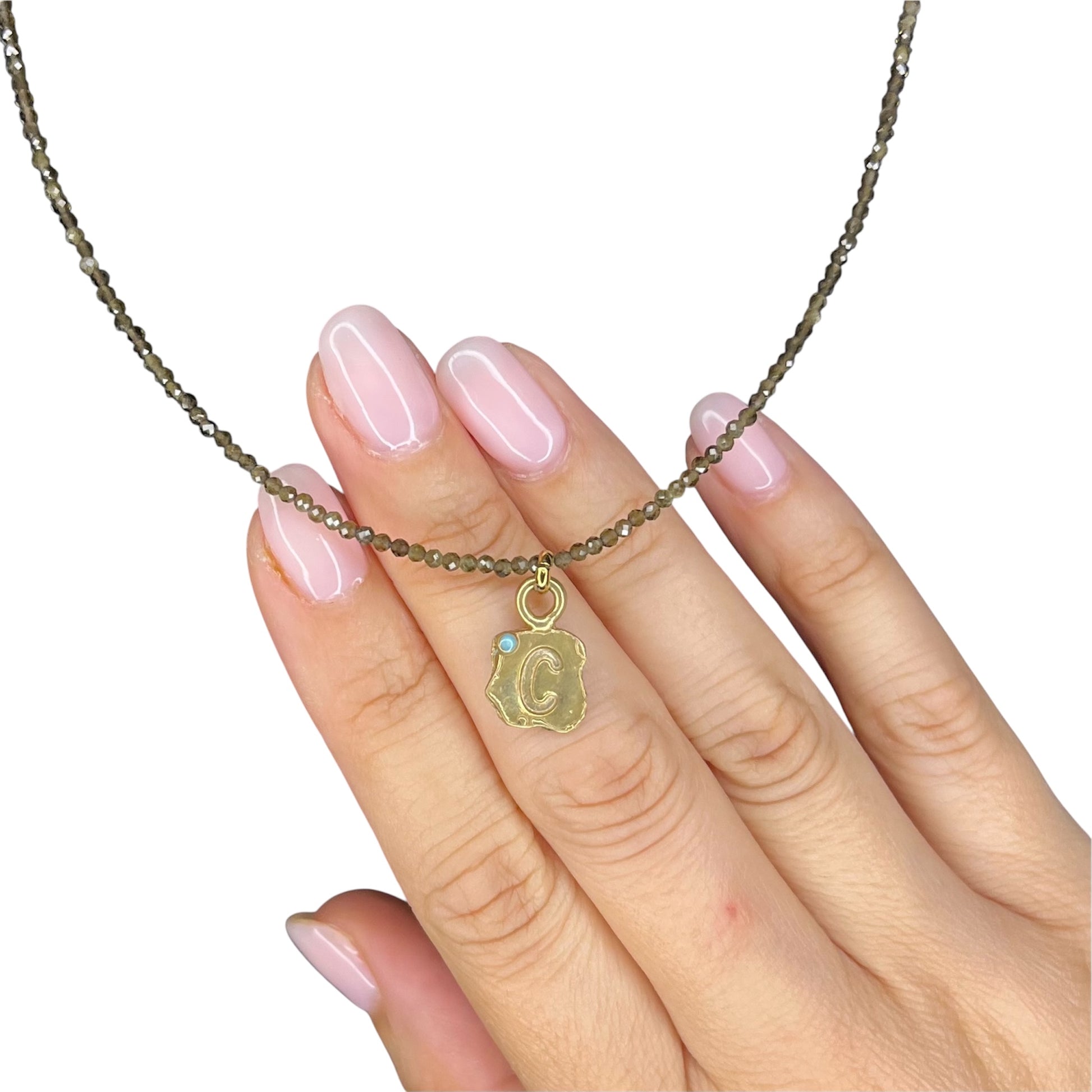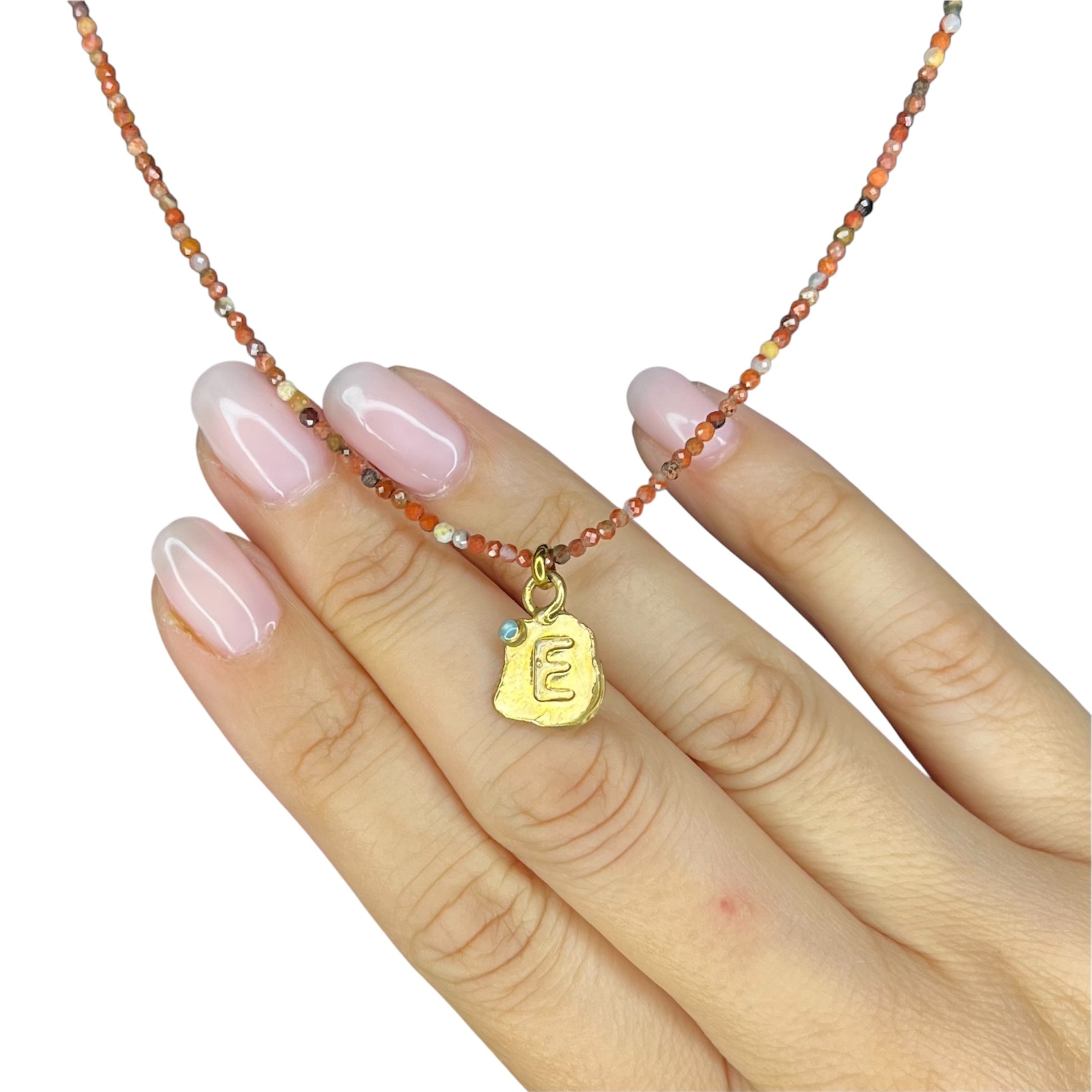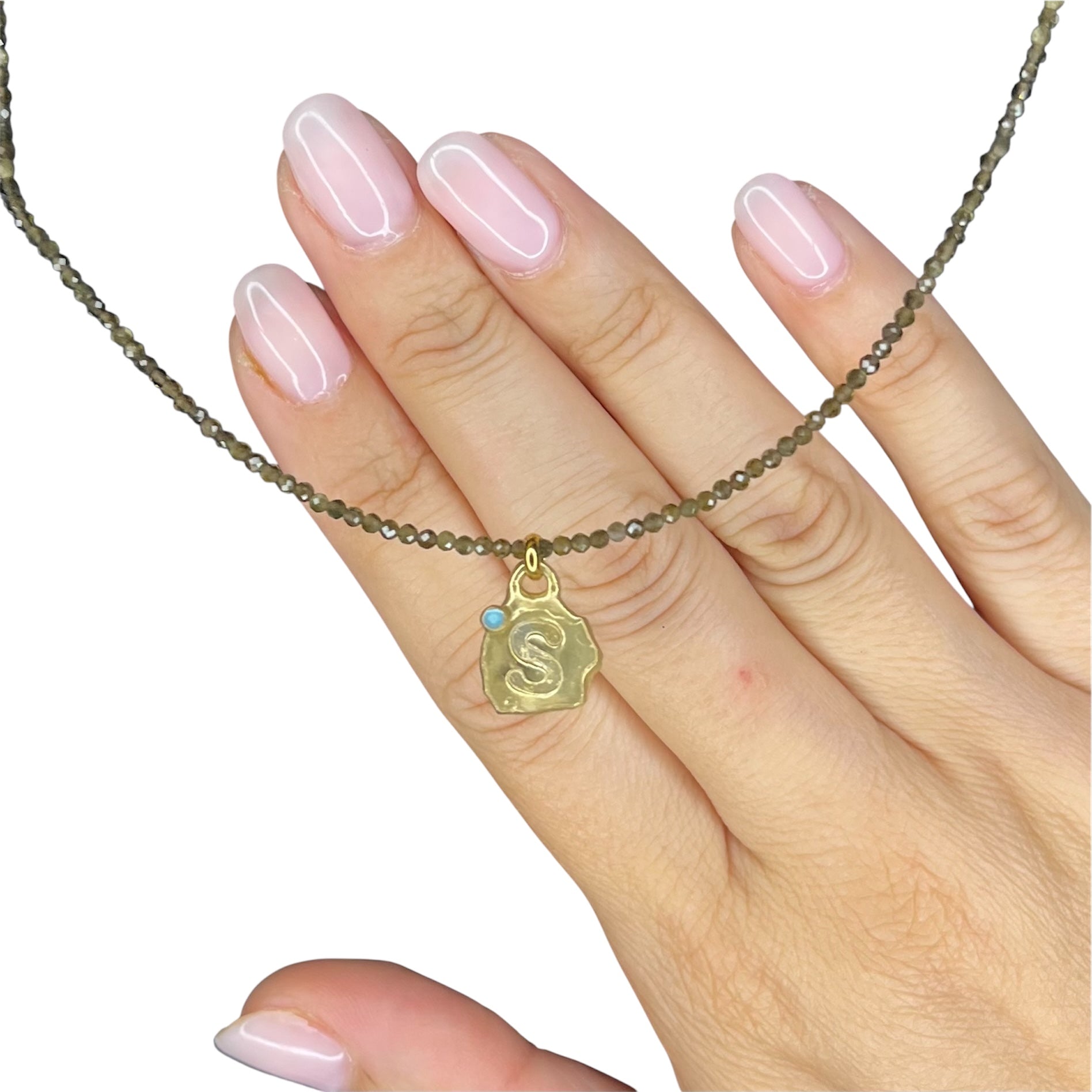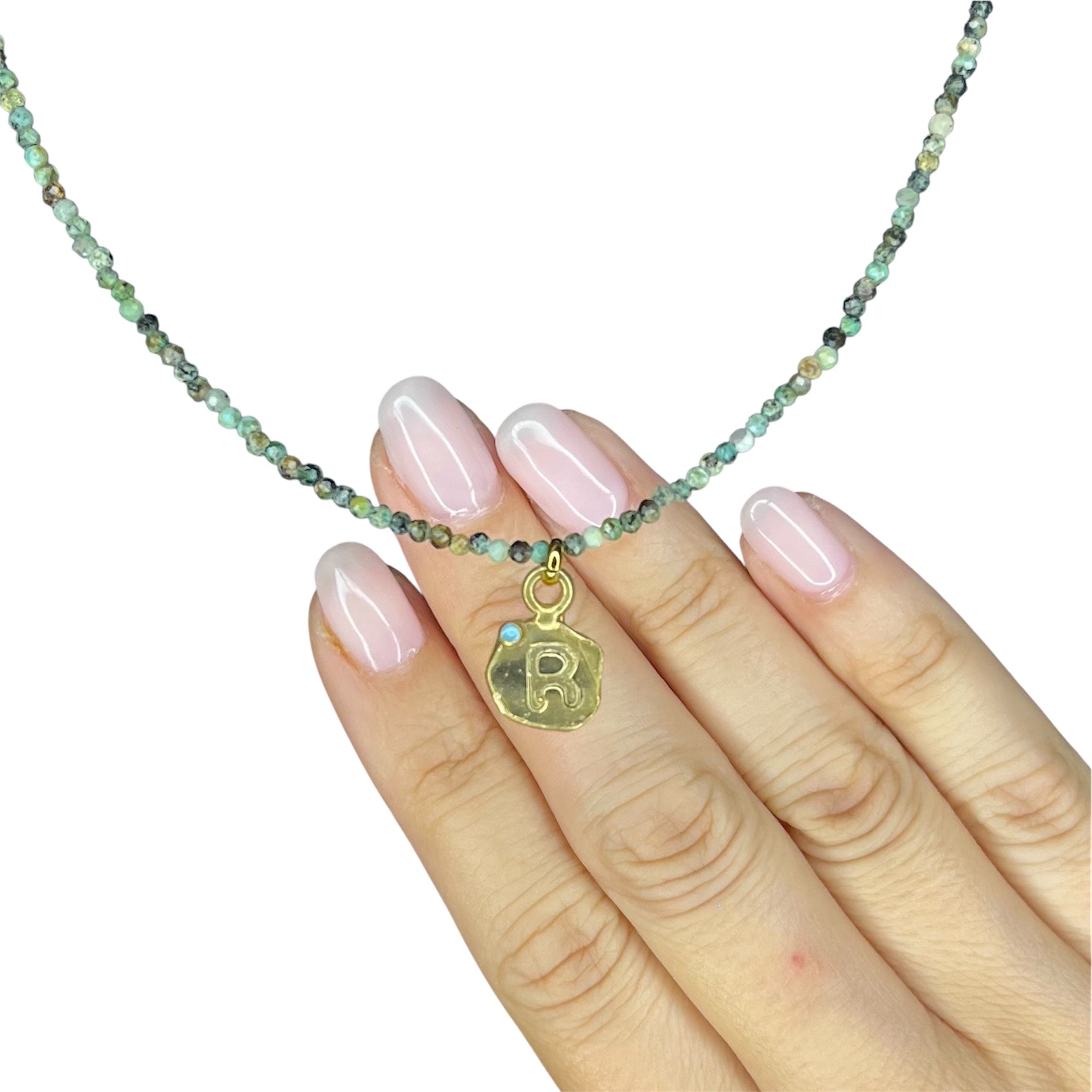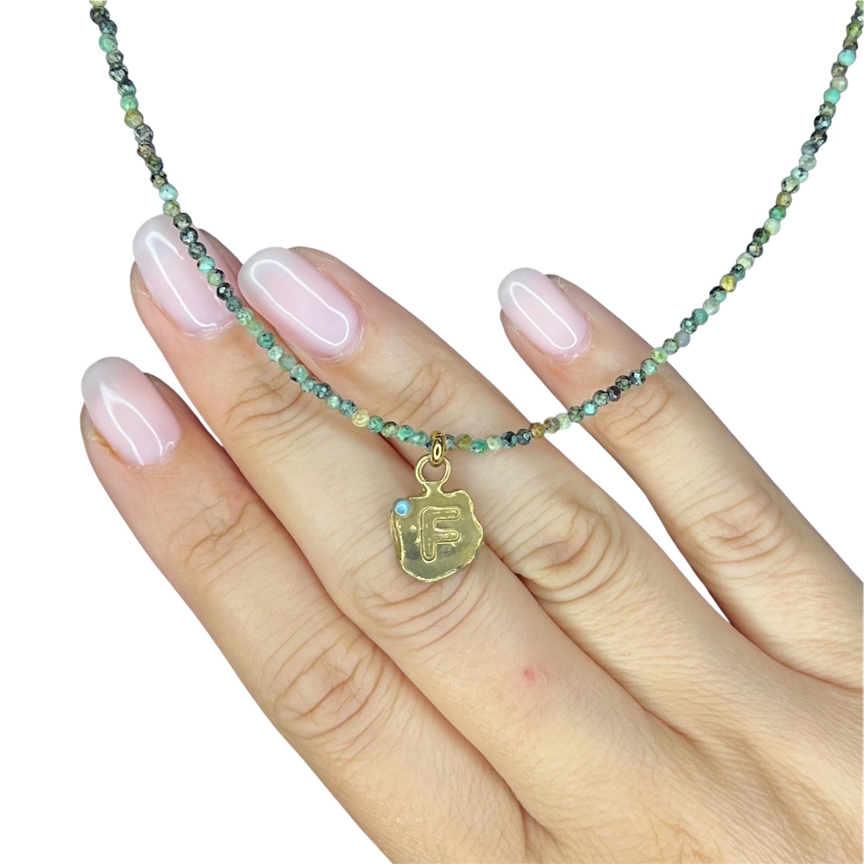 collana girocollo con pietre naturali e ciondolo in bronzo giallo fatto a mano.