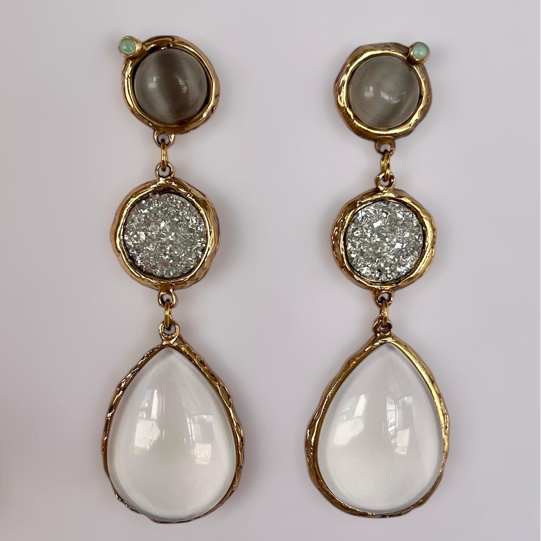Orecchini interamente realizzati a mano, eleganti effetto luce in bronzo giallo con perni in argento.