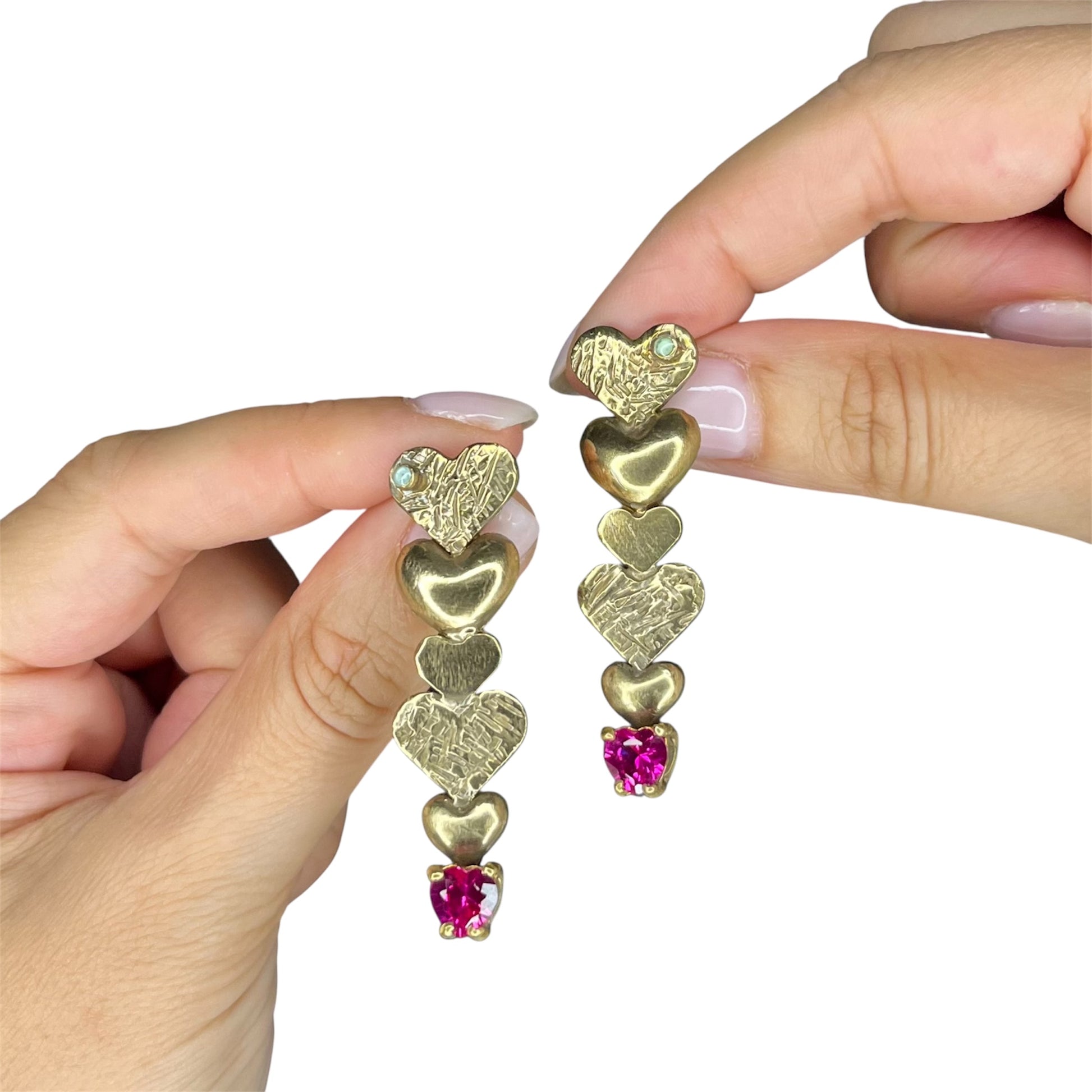 Eleganza lunga 5 cm: sei cuori leggeri culminano in uno zircone rubino. Perni in argento, lavorazione artigianale, anima Vover. 🌊