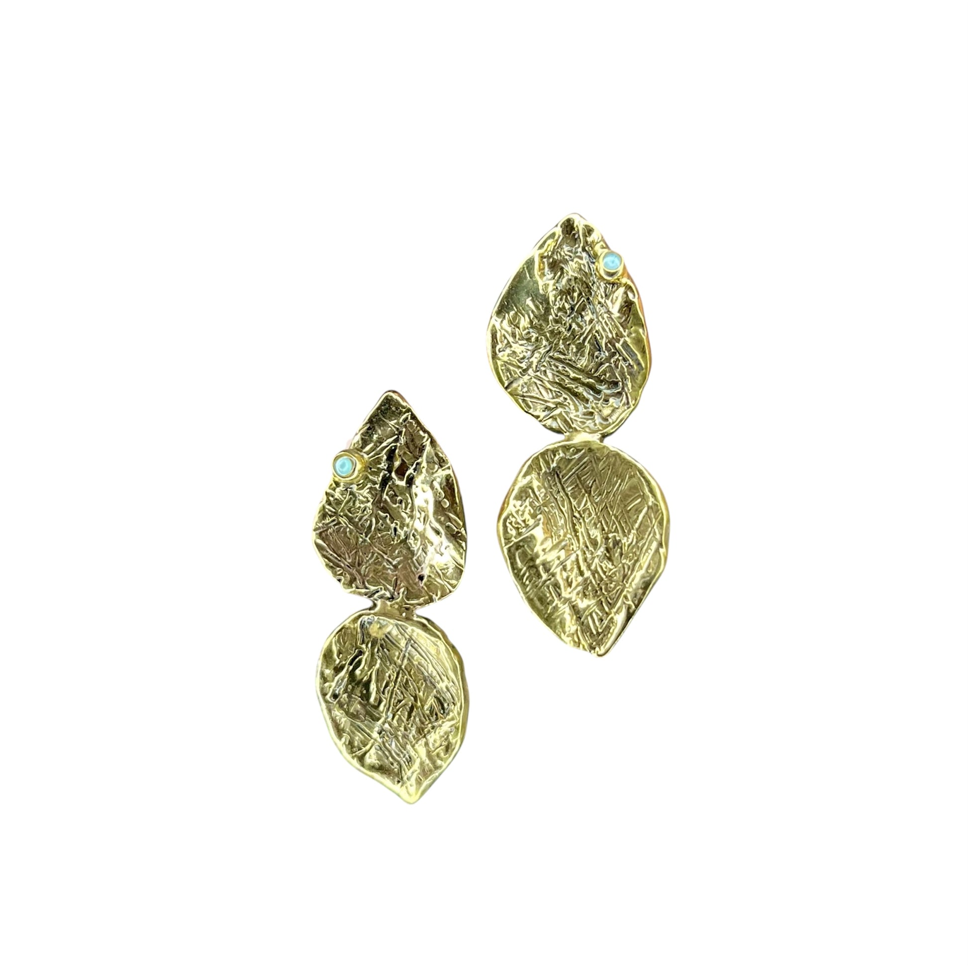 Gli orecchini doppia foglia della linea ecosostenibile uniscono eleganza e rispetto per l'ambiente. Realizzati in bronzo giallo riciclato e tecniche a basso impatto ambientale, simboleggiano la natura e la rigenerazione. Questi orecchini dimostrano che la moda può essere sostenibile senza rinunciare allo stile.