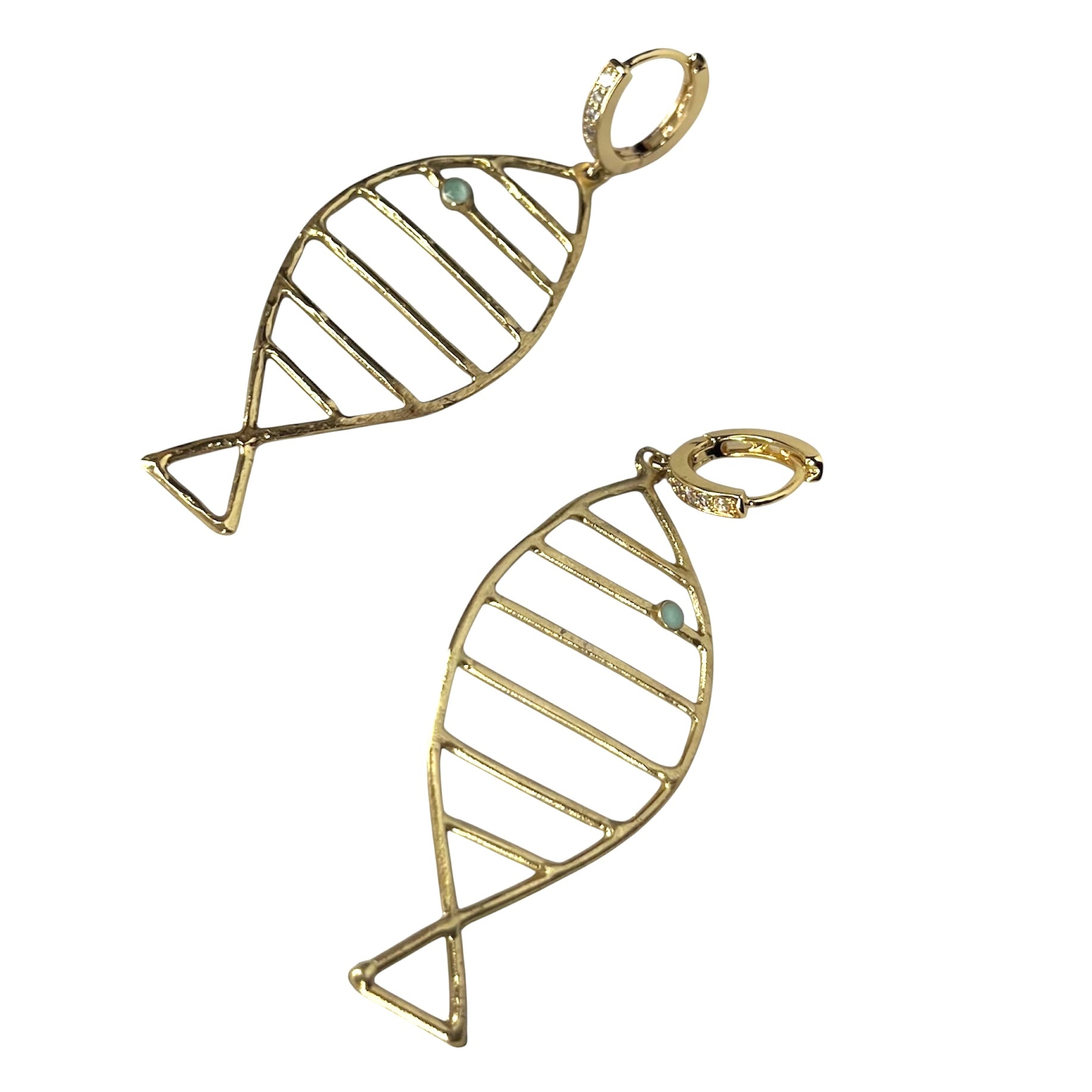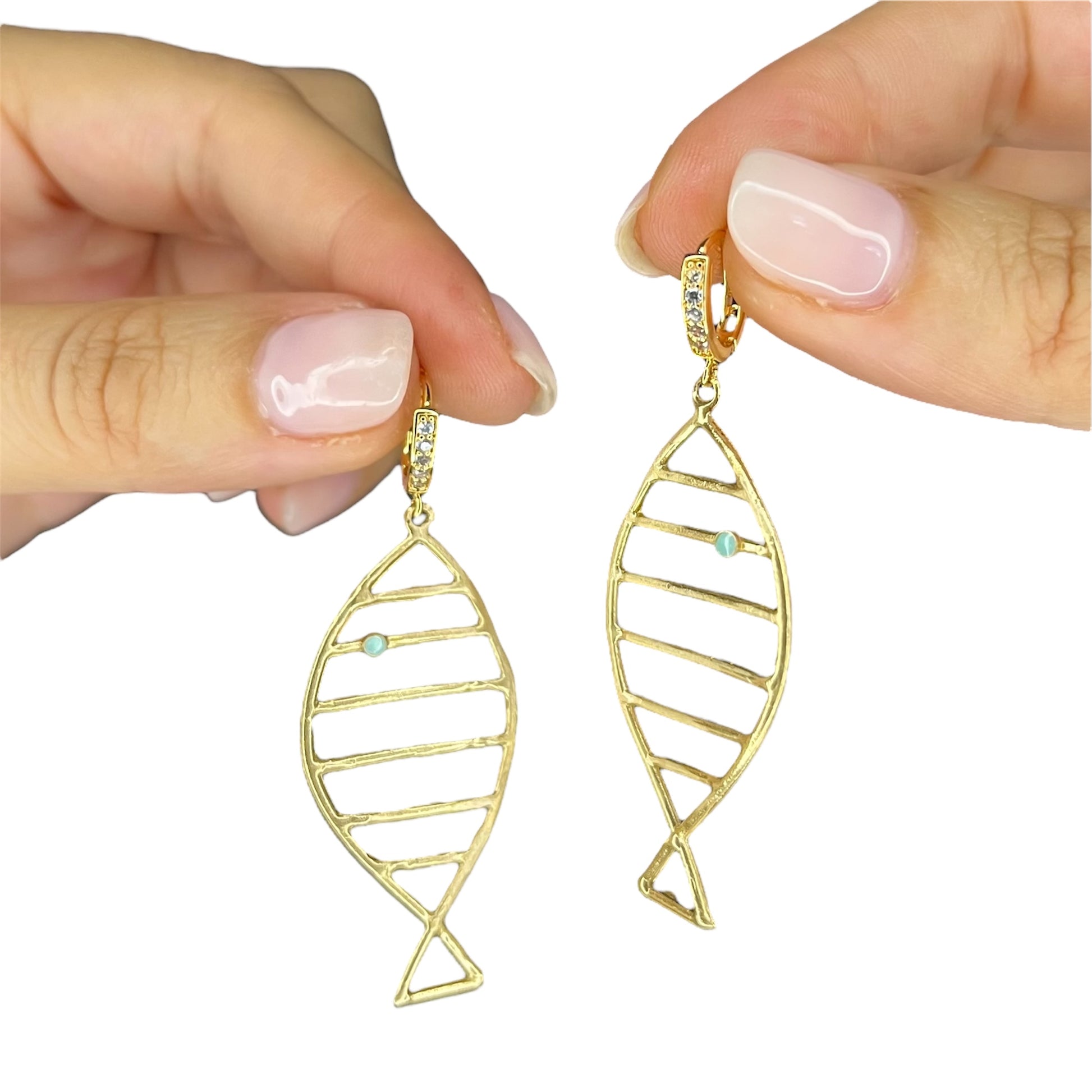 Pesce in bronzo giallo e cerchietti in acciaio con zirconi.