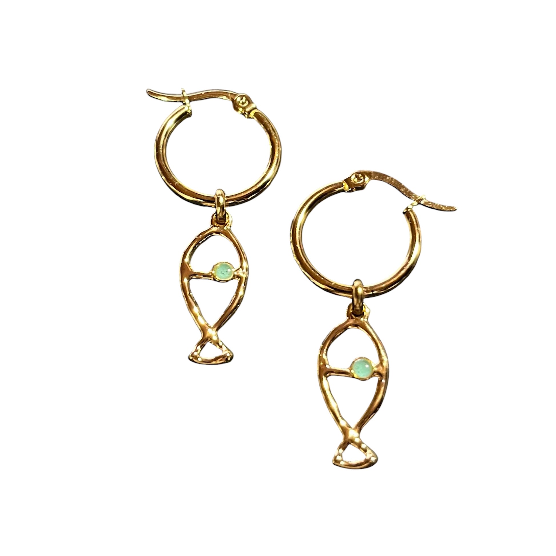 Orecchini in acciaio con pendente Pesciolino Origine in ottone galvanizzato oro.