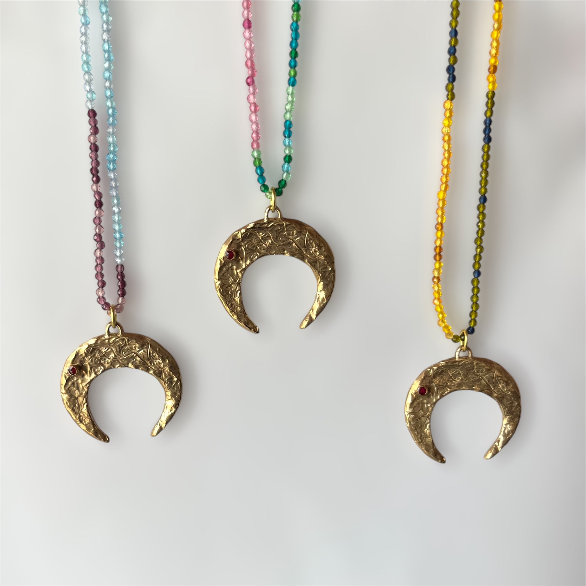 Ciondoli interamente realizzati a mano: corno, luna, stella e cuore.